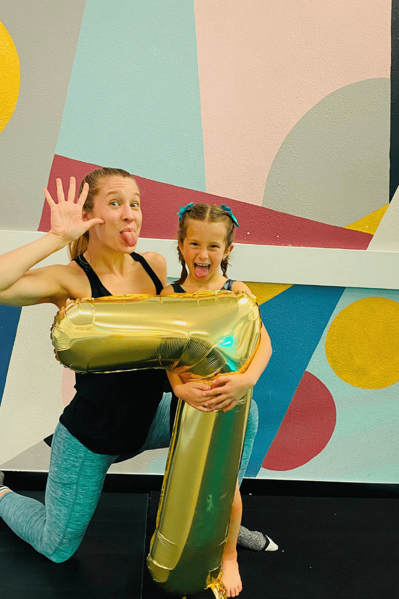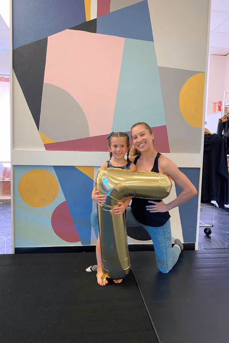 We even offer “mom and me” style classes for baby birthday parties! Use of the studio space including acrobatic props, party lights, mats, trampolines, and other items are included.