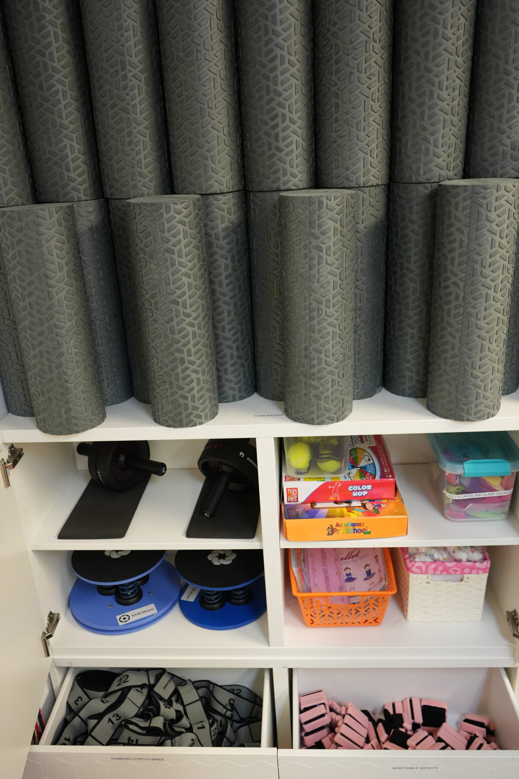 • Stretch bands, balance boards, barre fitness loop bands, and foam rollers for strength and flexibility training.