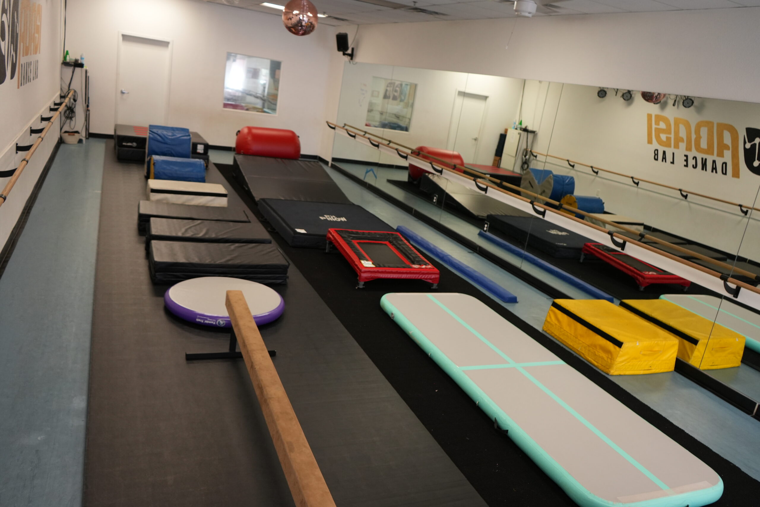 • Over $10,000 in professional acrobatics equipment, featuring cheer mats, wedges, air floors, poppers, trampolines, and back handspring mats for our acro students.